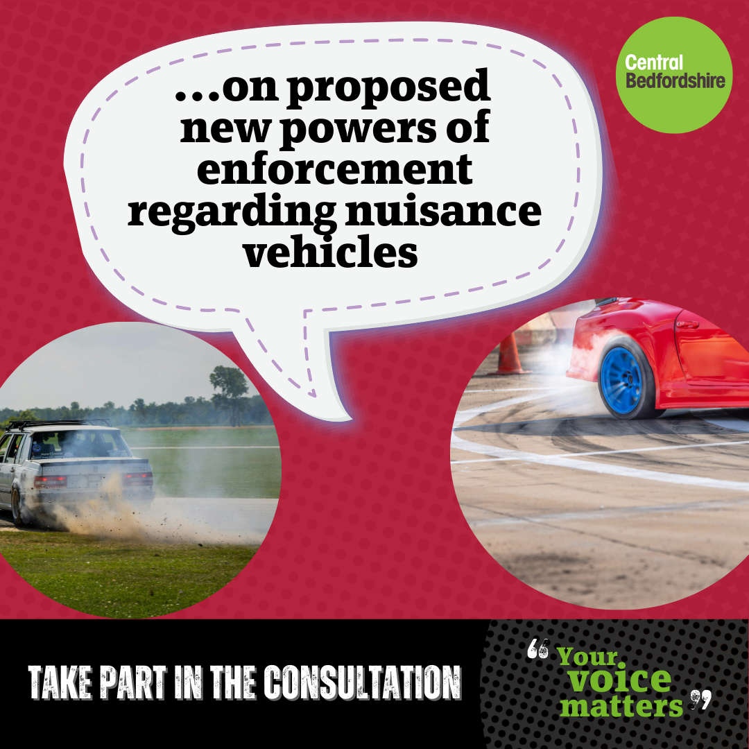 Consultation launched on new powers to tackle vehicle anti-social behaviourCentral Bedfordshire Council is asking residents, businesses and visitors to take part in a public consultation on proposed new powers aimed at tackling vehicle-related anti-social behaviour.