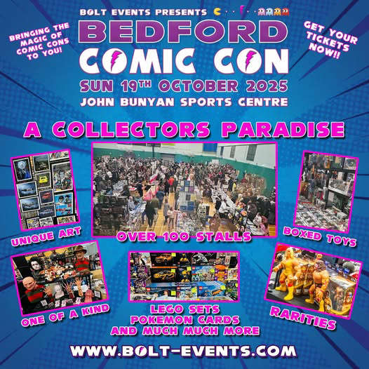 Bedford Comic Con is the place to be on Sunday 19th October 2025 at the John Bunyan Sports Centre!