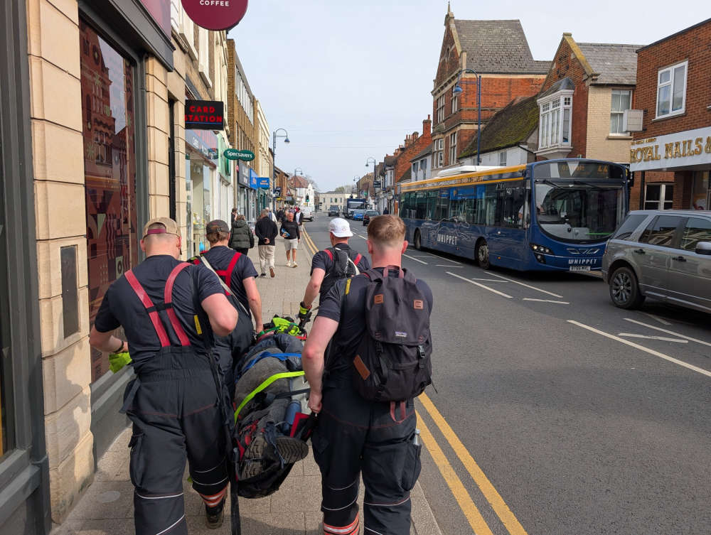 The group of nine recruits from Cambridgeshire Fire and Rescue Service set off from Service Headquarters in Huntingdon at around 8.50am on Thursday (20 March), all while carrying a stretcher loaded with 80kg of weight. They arrived at St Neots Fire Station just before sunset at 5.40pm.