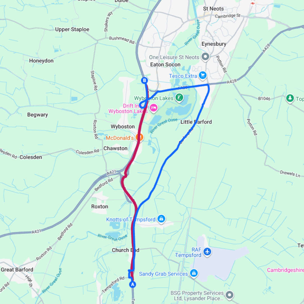 The A1 northbound between Tempsford and Wyboston will be closed overnight from 9pm until 5am between Monday 23 February and Saturday 28 February. During the same period, the A421 eastbound between the Renhold Interchange and the Black Cat junction will also shut overnight.